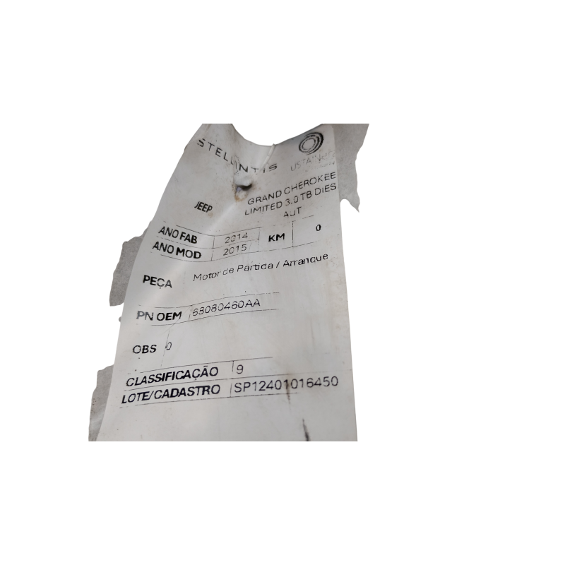MOTOR DE PARTIDA JEEP GRAND CHEROKEE LIMITED 3.0 TB D AT 14/15