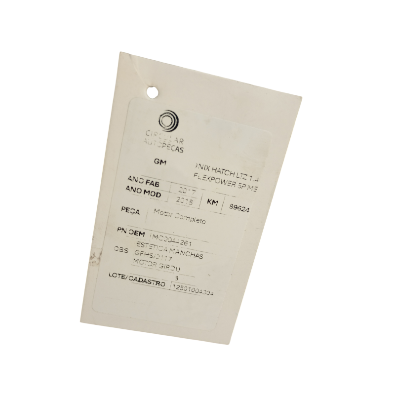 MOTOR COMPLETO CHEVROLET ONIX HATCH LTZ 1.4 8V FLEX 2018