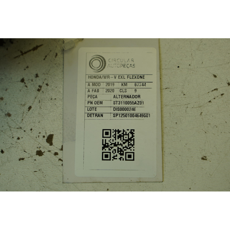 ALTERNADOR HONDA WR-V EXL 1.5 FLEXONE 2019/2020