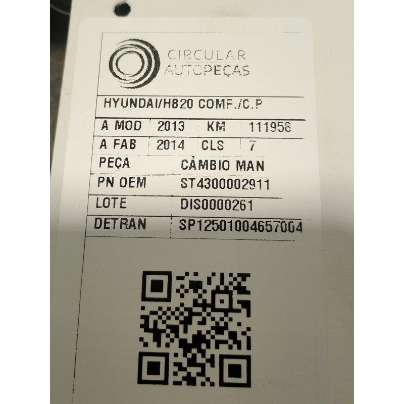 CÂMBIO MANUAL HB20 1.0 FLEX 12V 2013/2014
