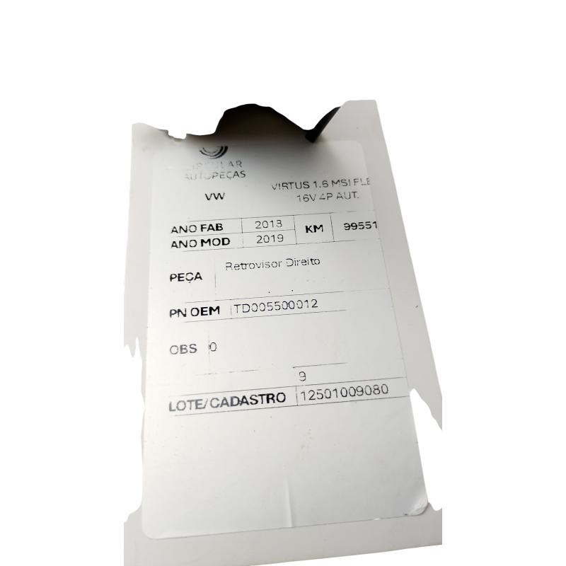 RETROVISOR DIREITO VOLKSWAGEN VIRTUS 1.6 MSI 16V 2018/19
