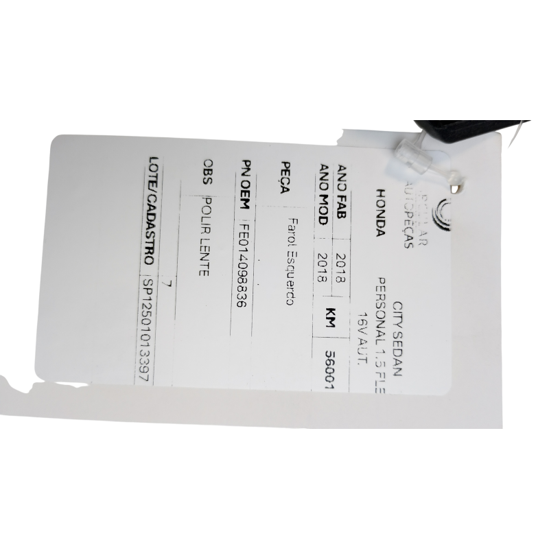 FAROL DIANTEIRO ESQUERDO HONDA CITY SEDAN PERS 1.5 FLX 2018