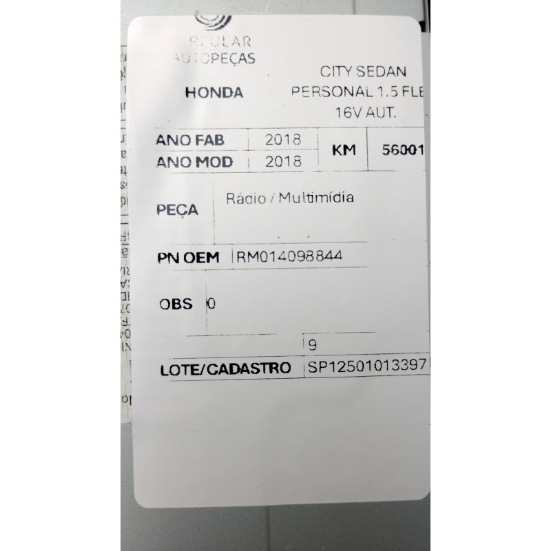 MULTIMÍDIA HONDA CITY SEDAN PERSONAL 1.5 FLEX 2018