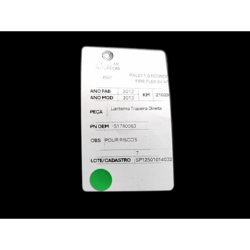 LANTERNA TRASEIRA DIREITA FIAT PALIO 1.0 ECO FIRE 8V 2012/13
