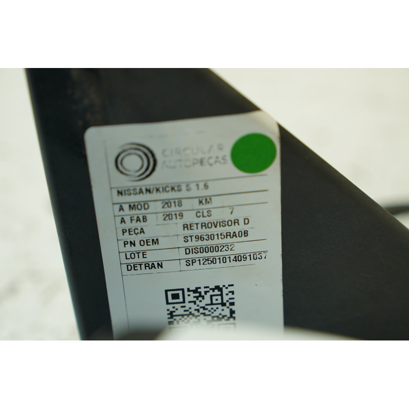 RETROVISOR DIREITO NISSAN KICKS S 1.6 16V BRANCO 2018/2019