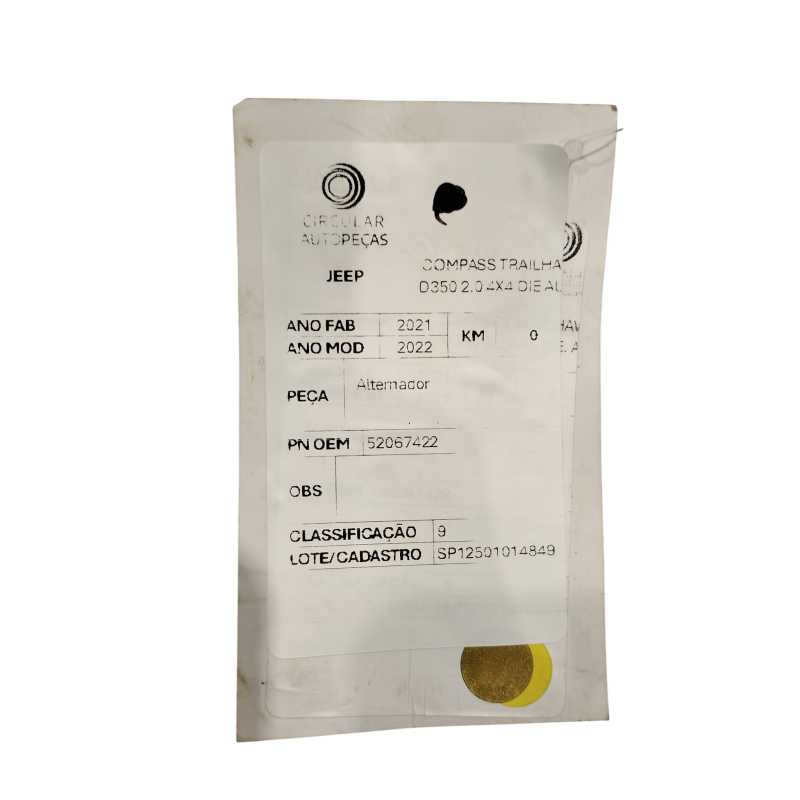 ALTERNADOR JEEP COMPASS TRAILHAWK TD350 2.0 4X4 DIE. AUT 21/22