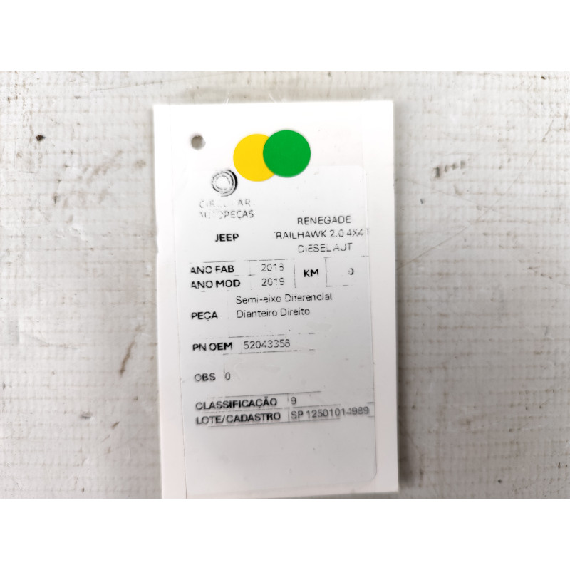 SEMIEIXO DIFEREN DIANTEIR DIREITO JEEP RENEGADE TRAIL 2.0 19