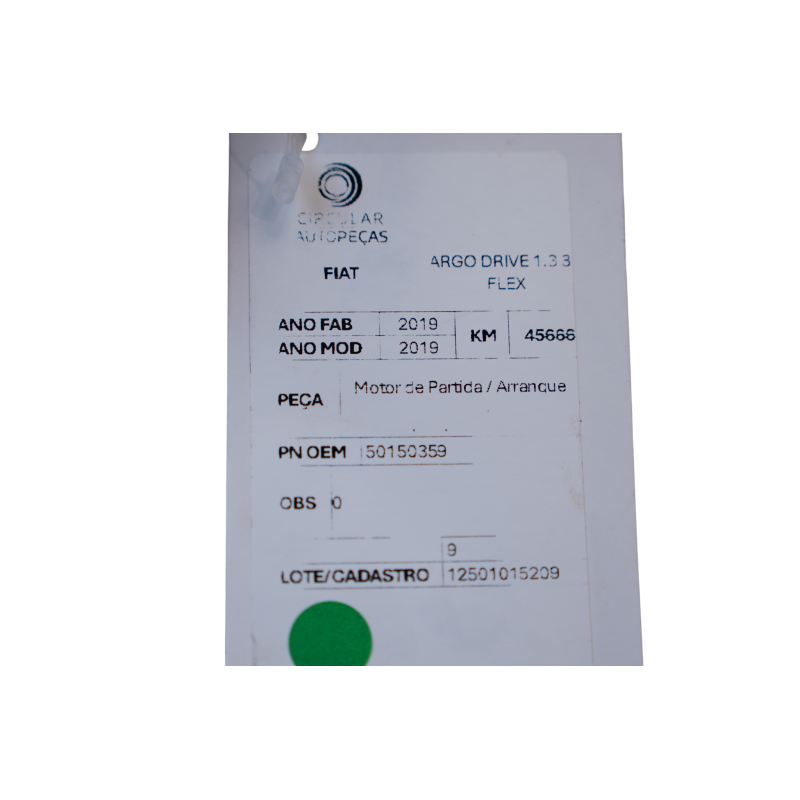 MOTOR DE PARTIDA FIAT ARGO DRIVE 1.3 8V FLEX 2019