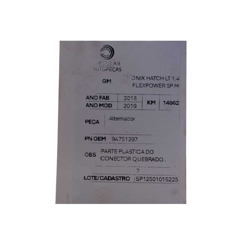 ALTERNADOR CHEVROLET ONIX HATCH LT 1.4 8V 2018/19