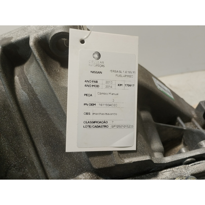 CÂMBIO MANUAL NISSAN VERSA SL 1.6 16V FLEX FUEL 2014