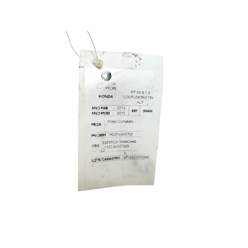 MOTOR COMPLETO HONDA FIT EX/S 1.5 FLEX 2014/2015