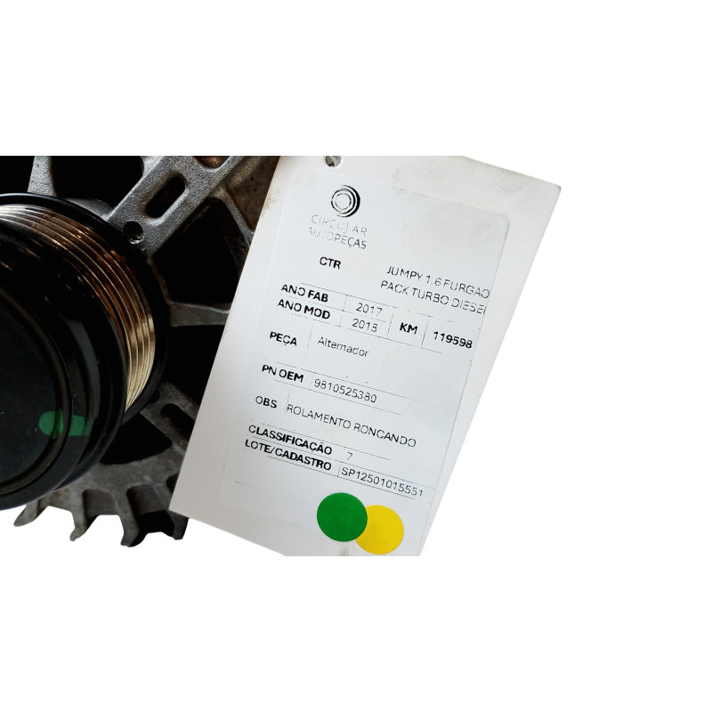 ALTERNADOR CITROEN JUMPY 1.6 FURGÃO PACK TURBO DIESEL 2017/2018