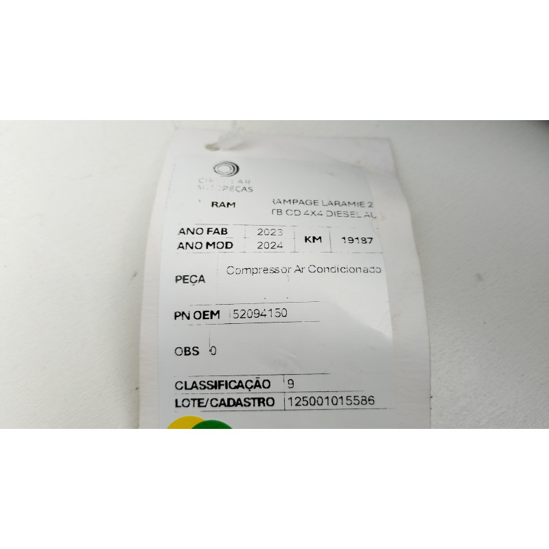 COMPRESSOR AR CONDICIONADO RAM RAMPAGE LARAMIE 2.0 2023/24