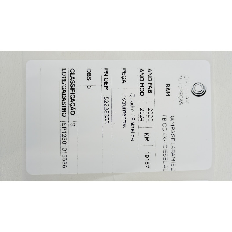 QUADRO PAINEL DE INSTRUMENTOS RAM RAMPAGE LARAMIE 2.0 23/24