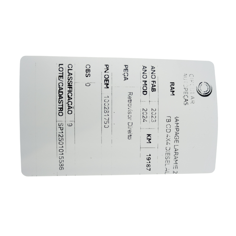 RETROVISOR DIREITO RAM RAMPAGE LARAMIE 2.0 2023/24