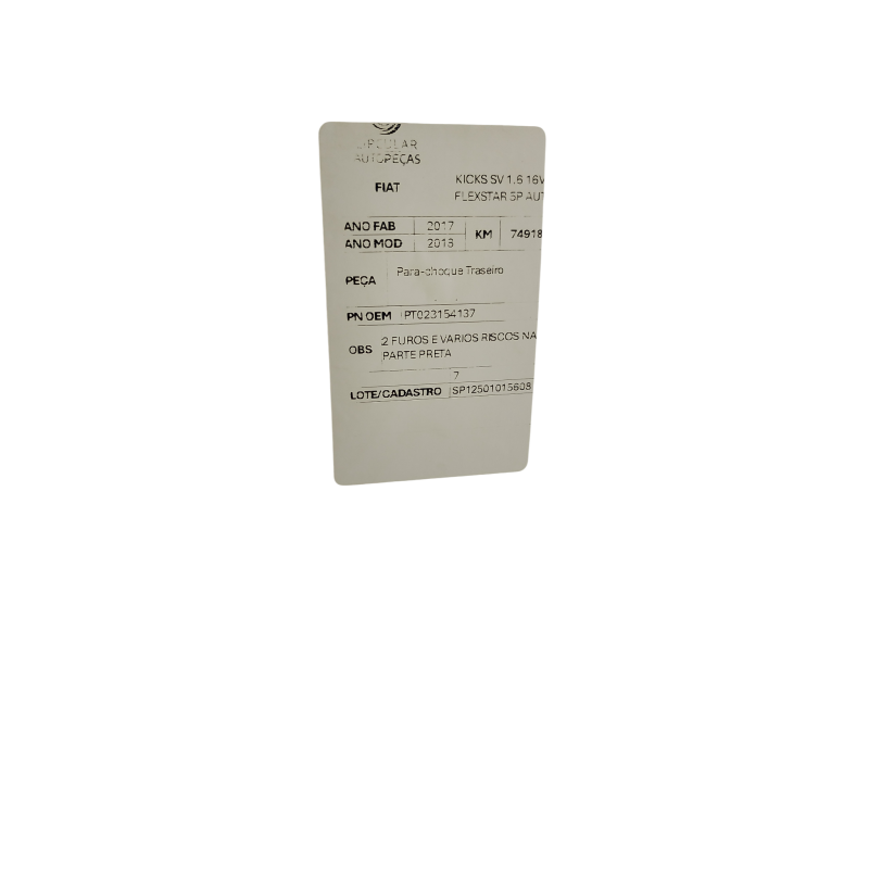 PARA-CHOQUE TRASEIRO NISSAN KICKS SV 1.6 16V BRANCO 2017/18