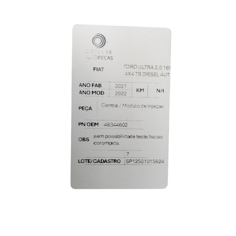 MÓDULO DE INJEÇÃO FIAT TORO ULTRA 2.0 16V 2021/22