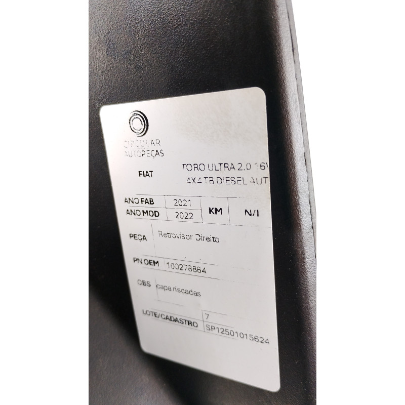 RETROVISOR DIREITO FIAT TORO ULTRA 2.0 16V 2021/2022