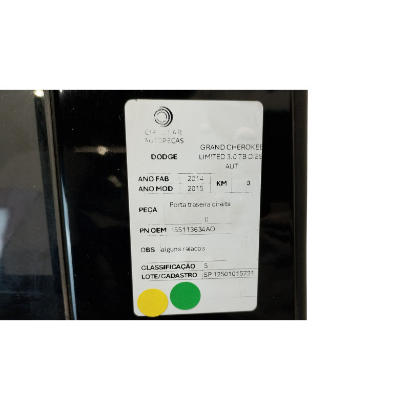 PORTA TRASEIRA DIREITA JEEP G CHEROKEE LIMIT 3.0 BRANCA 2014/15