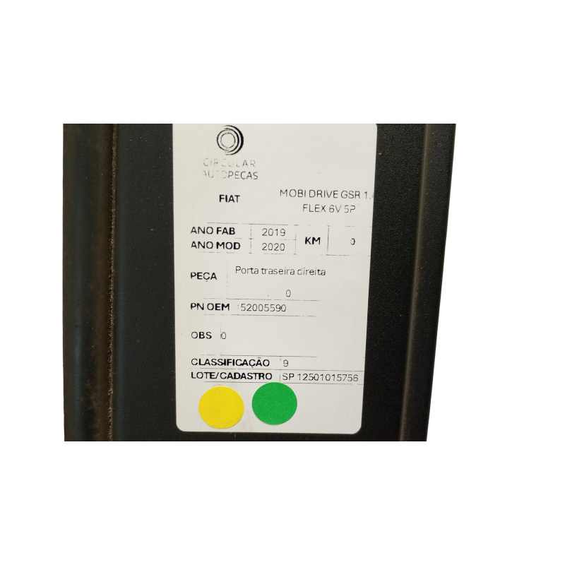 PORTA TRASEIRA DIREITA FIAT MOBI DRIVE GSR 1.0 BRANCA 2019/20