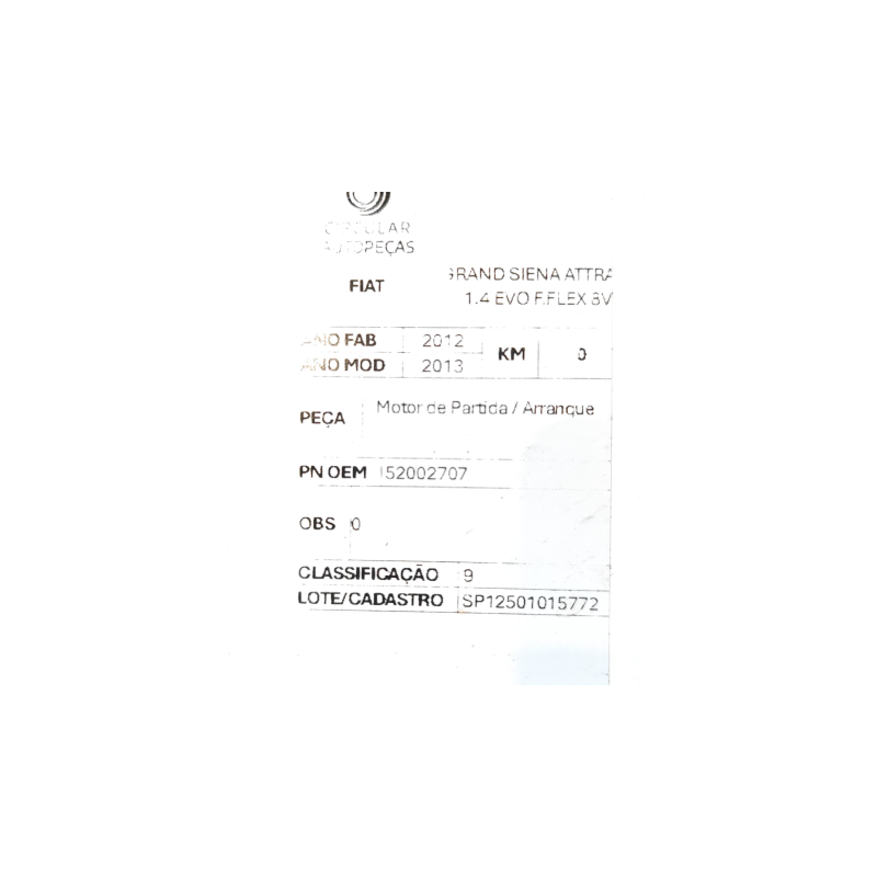 MOTOR DE PARTIDA FIAT GRAND SIENA ATTRAC. 1.4 2012/2013