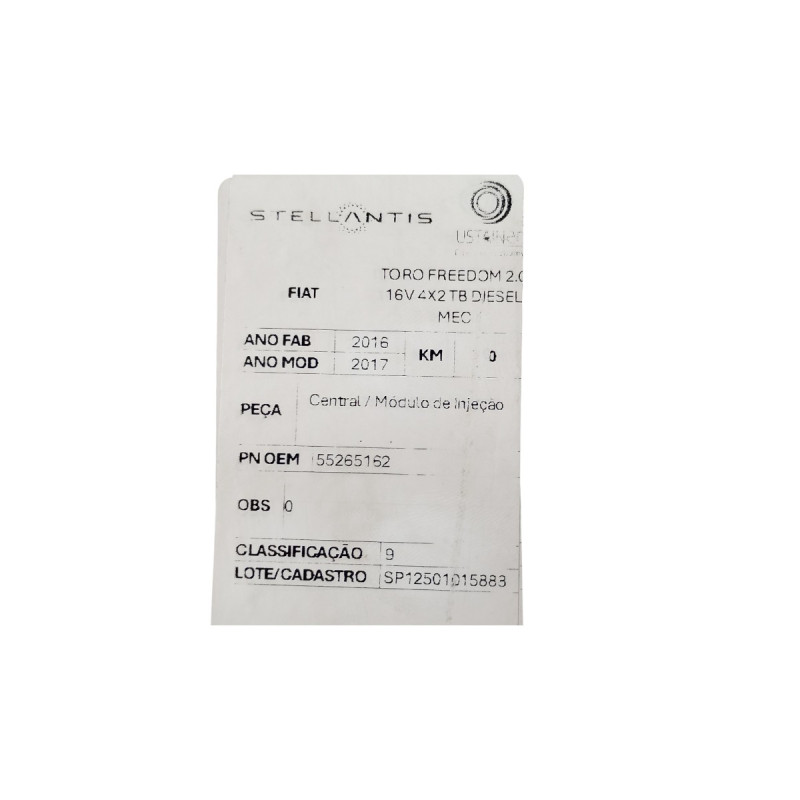 CENTRAL MÓDULO DE INJEÇÃO FIAT TORO FREEDOM 2.0 16V TURBO DIESEL CÂMBIO MANUAL 2016/2017