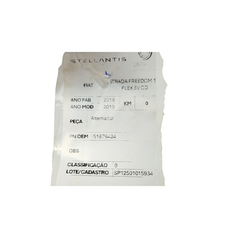 ALTERNADOR FIAT STRADA FREEDOM 1.4 2018/2019