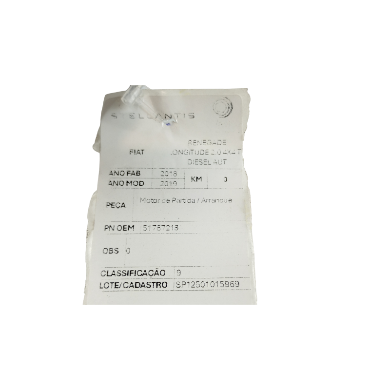 MOTOR DE PARTIDA JEEP RENEGADE LONGITUDE 2.0 4X4 TB DIESEL AUT 18/19