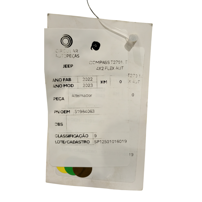 ALTERNADOR JEEP COMPASS S T270 1.3 TB 4X2 FLEX AUT 2022/23