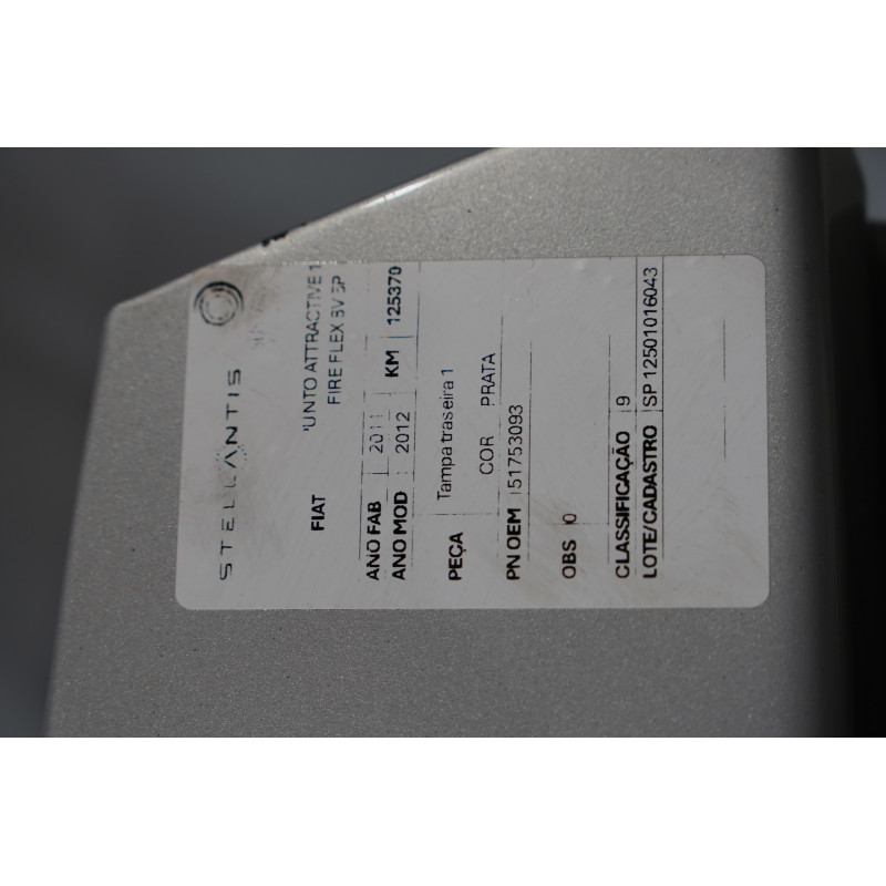 TAMPA TRASEIRA FIAT PUNTO ATTRACTIVE 1.4 PRATA 2011/2012