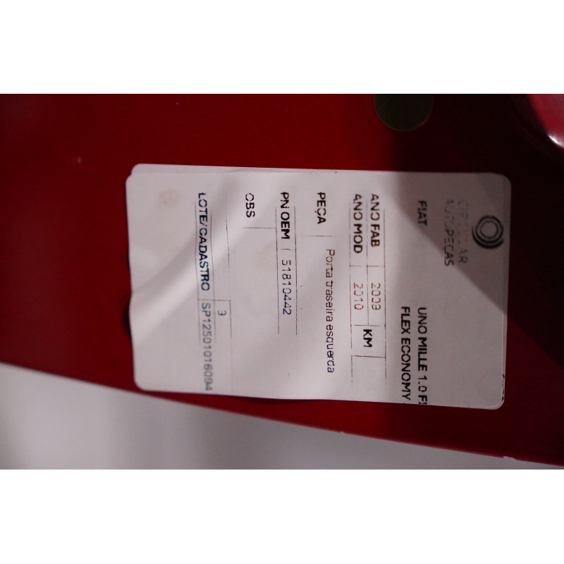 PORTA TRASEIRA ESQUERDA FIAT UNO MILLE 1.0 VERMELHO 2009/10