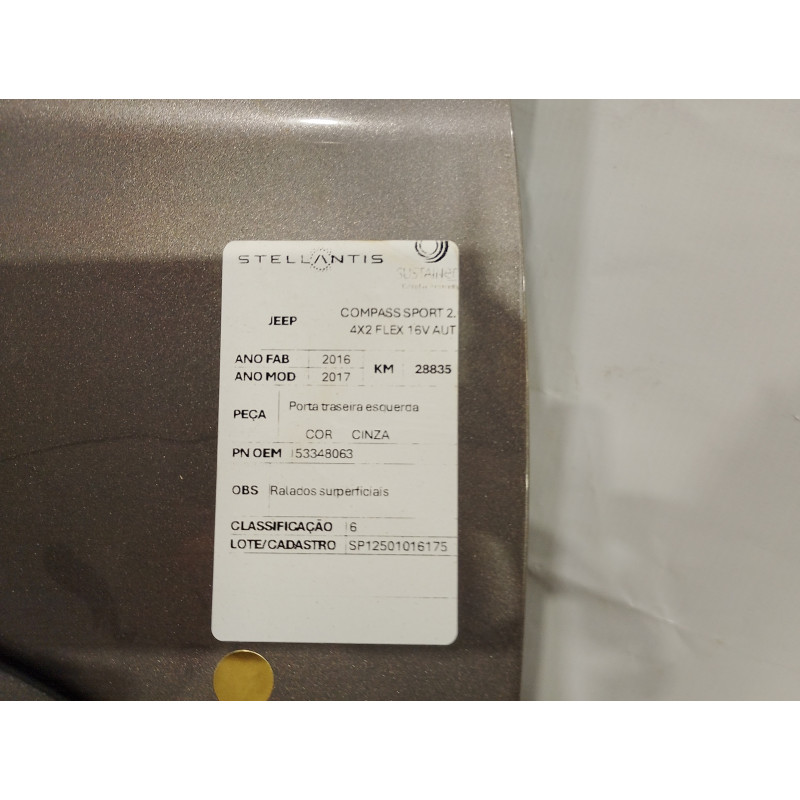 PORTA TRASEIRA ESQUERDA JEEP COMPASS SPORT CHUMBO FLEX 2017