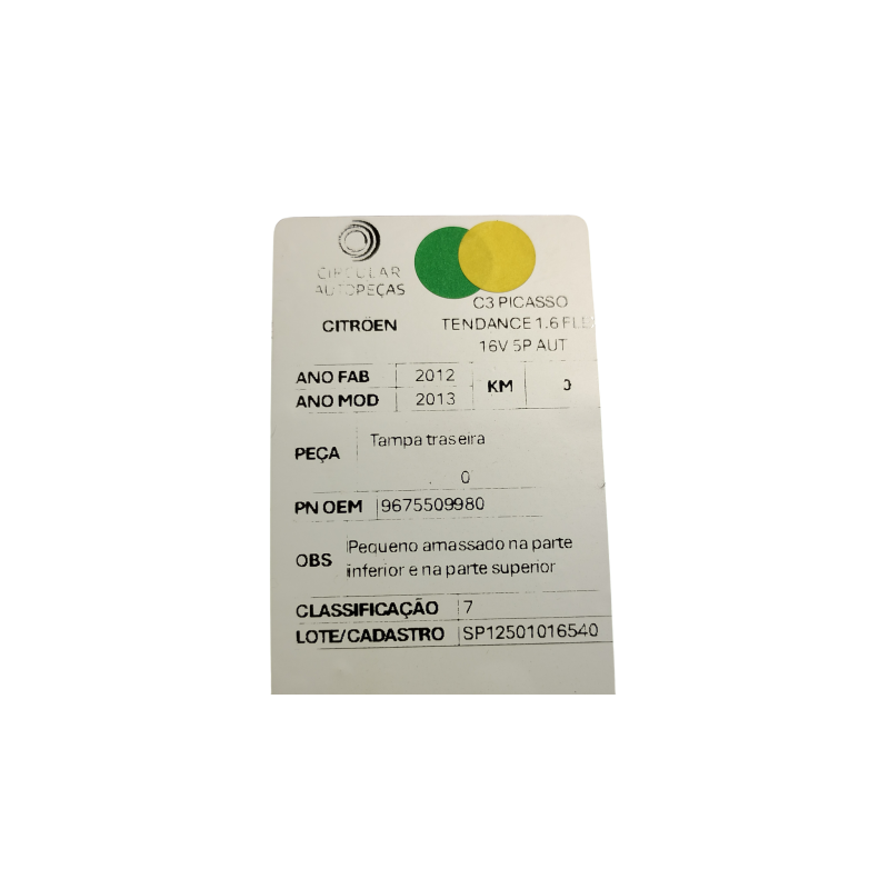 TAMPA TRASEIRA CITROËN C3 PICASSO EXCLUSIVE 1.6 2012/2013