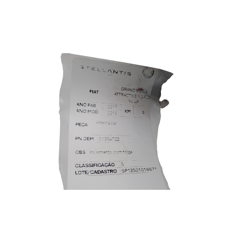 ALTERNADOR FIAT GRAND SIENA ATTRACTIVE 1.0 FLEX 8V 4P 2017/18