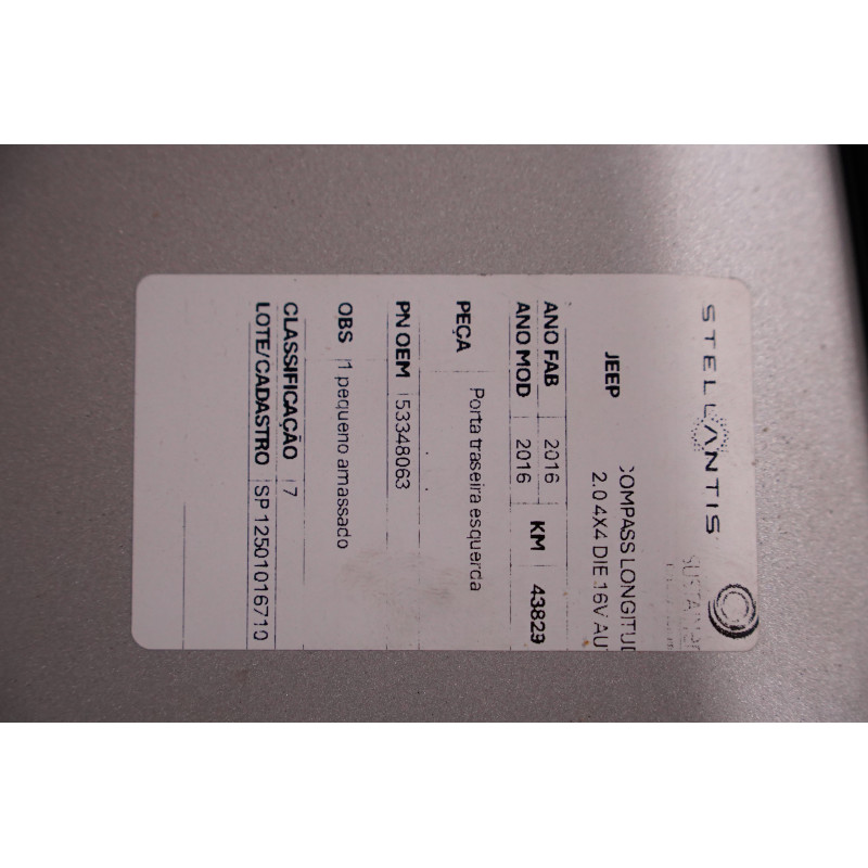 PORTA TRASEIRA ESQUERDA JEEP COMPASS LONGITUDE PRATA 2016