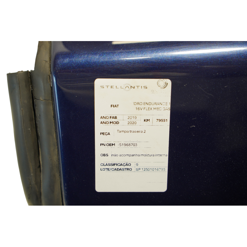 TAMPA TRASEIRA FIAT TORO ENDURANCE 1.8 16V FLEX CÂMBIO MANUAL AZUL 2019/2020