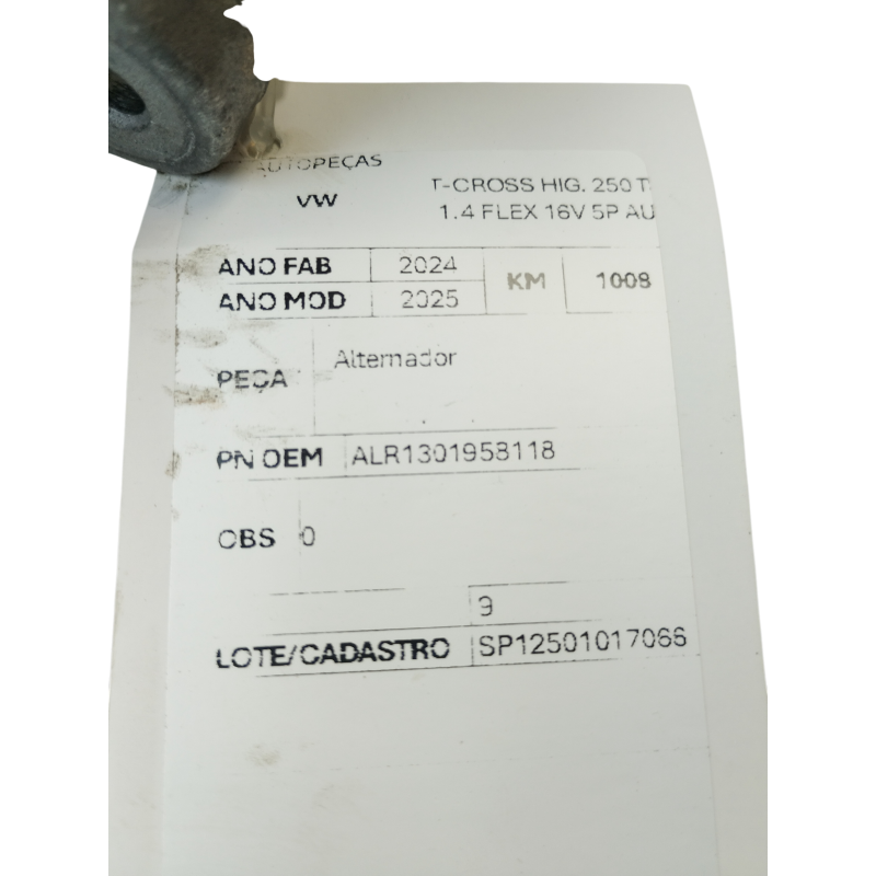 ALTERNADOR VOLKSWAGEN T-CROSS HIG. 250 TSI 1.4 FLEX 16V 5P AUT 24/25