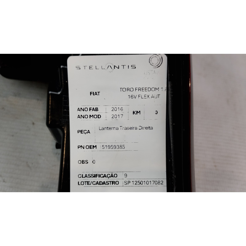 LANTERNA TRASEIRA DIREITA FIAT TORO FREEDOM 1.8 2016/2017