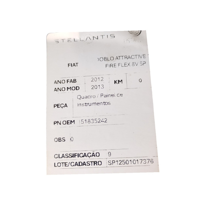 QUADRO PAINEL DE INSTRUMENTOS FIAT DOBLO ATTRACTIVE 1.4 FIRE FLEX 8V 5P 2012/2013