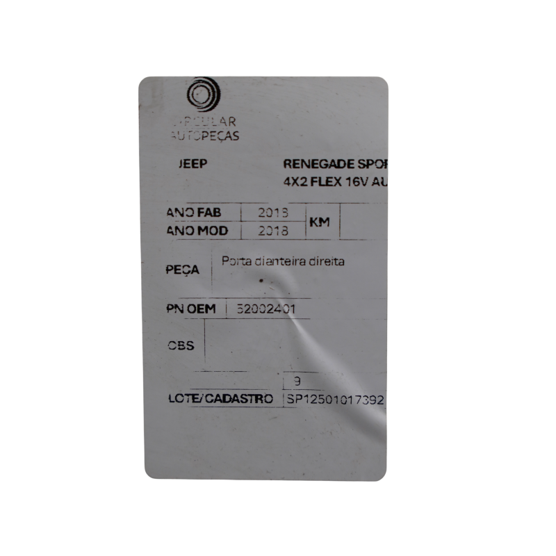 PORTA DIANTEIRA DIREITA JEEP RENEGADE SPORT 1.8 BRANCA 2018
