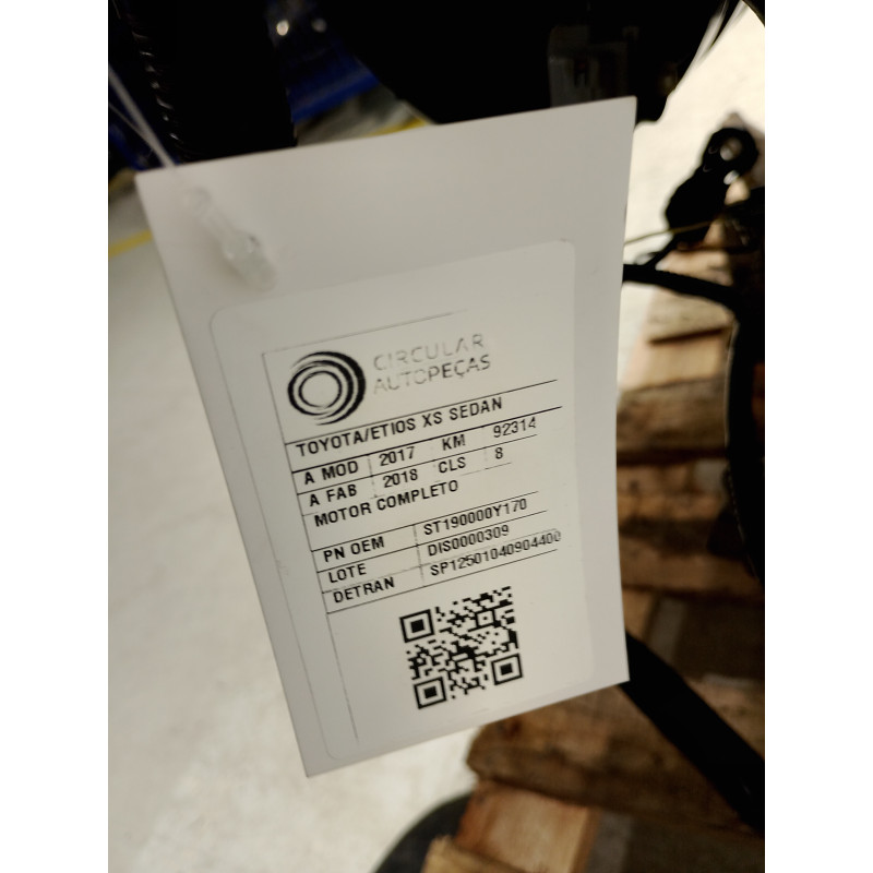 MOTOR COMPLETO TOYOTA ETIOS XS SEDAN 1.5 FLEX 2018