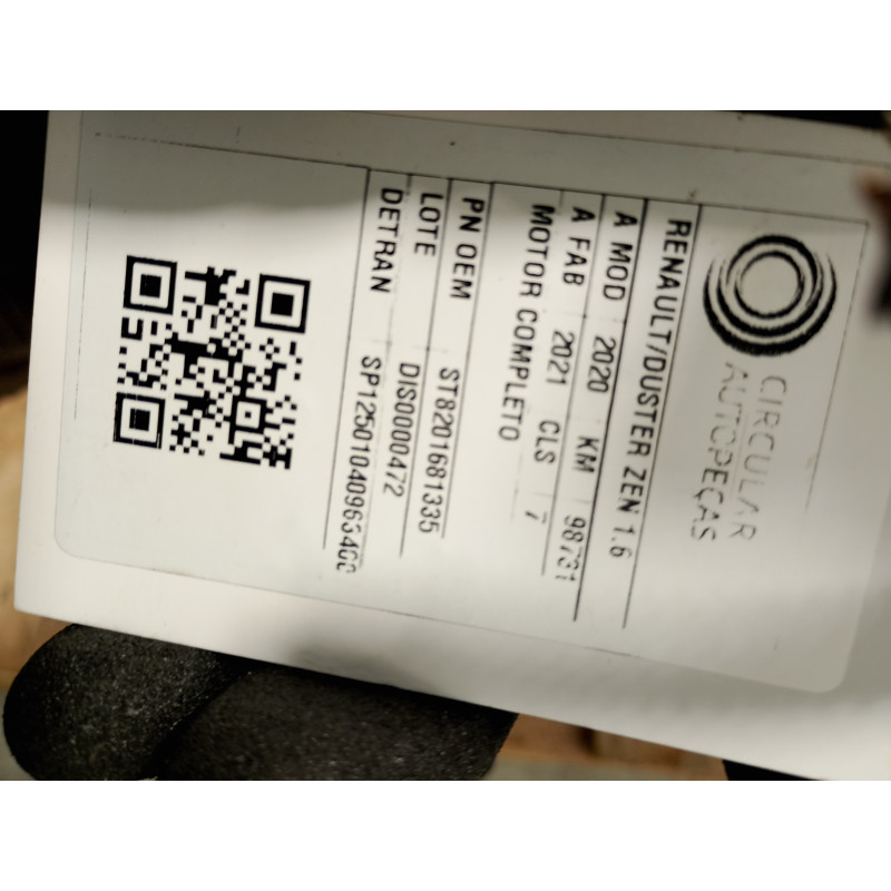 MOTOR COMPLETO RENAULT DUSTER ZEN 1.6 16V FLEX 2020/2021