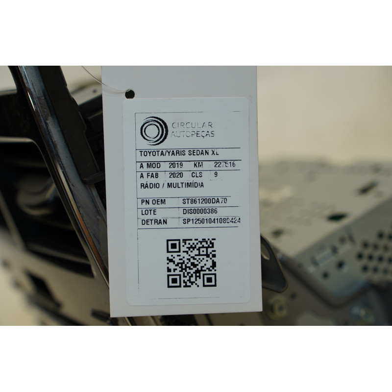RÁDIO MULTIMÍDIA TOYOTA YARIS XL LIVE SEDAN 1.5 FLEX 2020