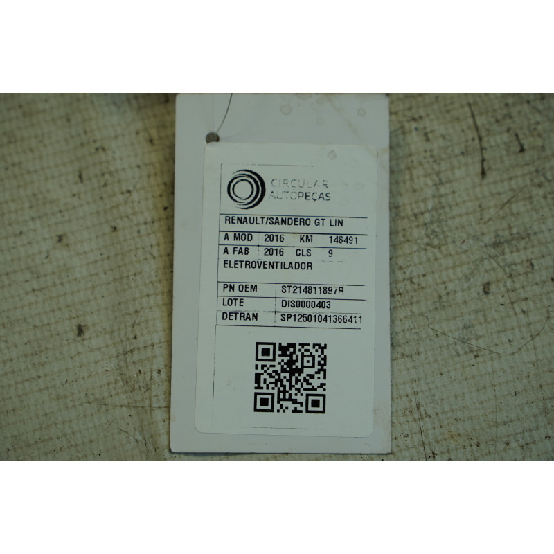 ELETROVENTILADOR RENAULT SANDERO GT LINE HI-POWER 1.6 2016