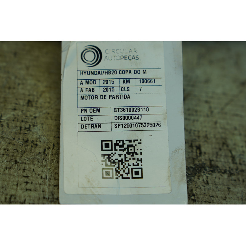 MOTOR DE PARTIDA HYUNDAI HB20 COPA DO MUNDO 1.6 2015