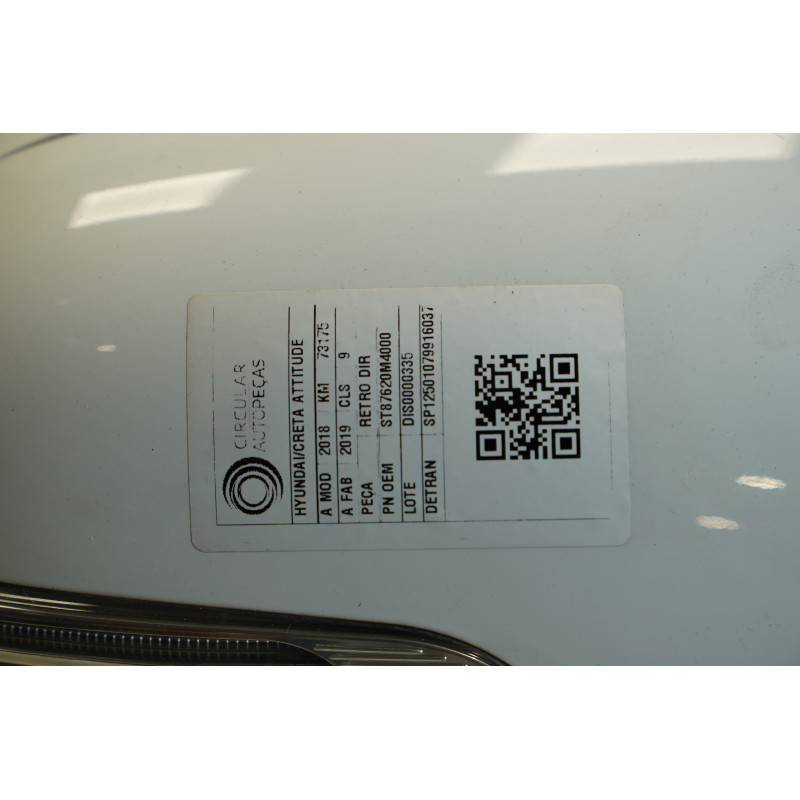 RETROVISOR DIREITO HYUNDAI CRETA ATTITUDE 1.6 BRANCO 2019
