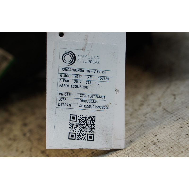 FAROL DIANTEIRO ESQUERDO HONDA HR-V EX 1.8 FLEXONE 2017