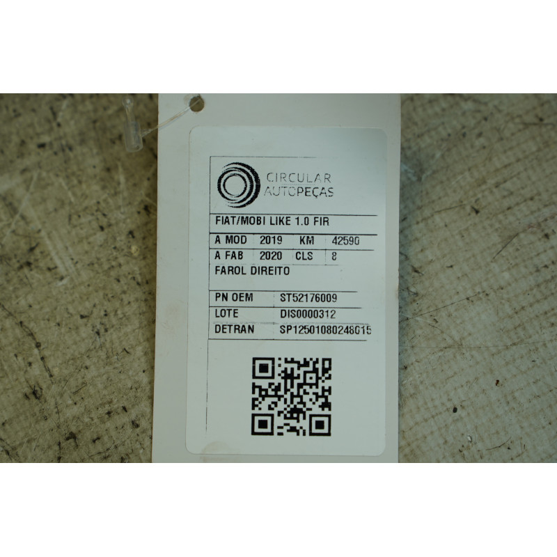 FAROL DIANTEIRO DIREITO FIAT MOBI LIKE 1.0 FIRE 2019/2020