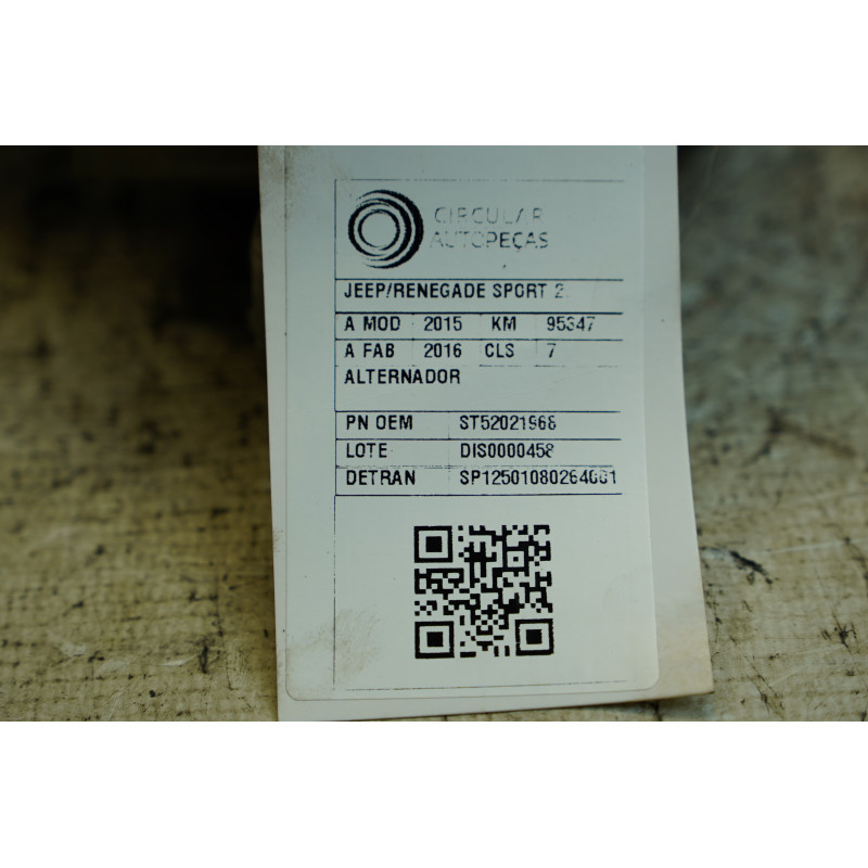 ALTERNADOR JEEP RENEGADE SPORT 2.0 4X4 2015/2016