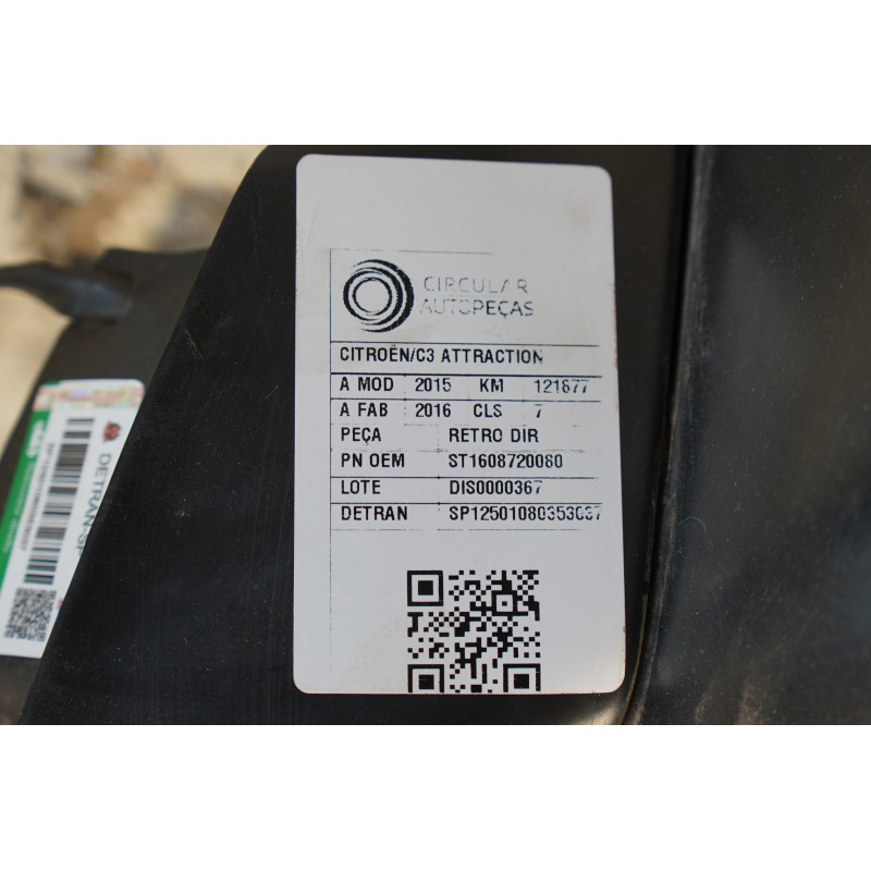RETROVISOR DIREITO CITROËN C3 ATTRACTION 1.2 BRANCA 2016